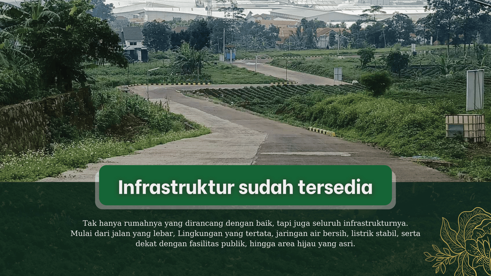 Menyediakan hunian nyaman dengan suasana pegunungan yang asri dan tenang. Dengan udara segar dan pemandangan yang memukau, Anda dapat menikmati hidup dengan lebih rileks. Lingkungan yang asri ini juga menawarkan berbagai aktivitas luar ruangan, seperti hiking dan bersepeda, menjadikannya tempat yang ideal untuk beristirahat dan bersantai.